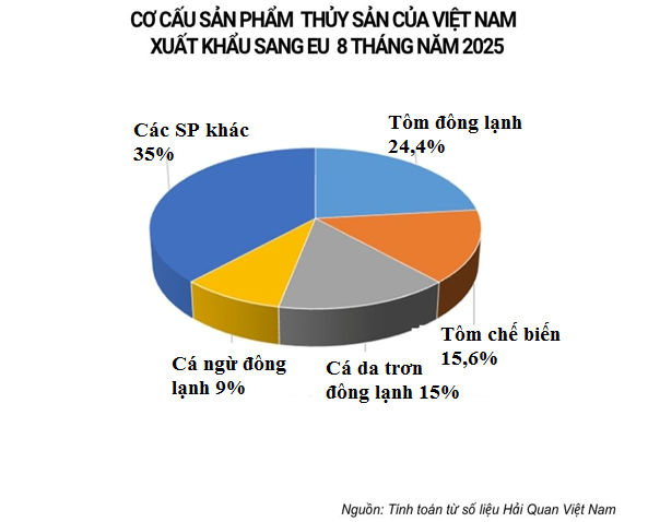 Mặc dù phải đối mặt với các quy định chặt chẽ như thuế chống bán phá giá, thuế chống trợ cấp nhưng nhu cầu của thị trường EU vẫn rất lớn. Cùng với đó, chất lượng thủy sản Việt Nam được cải thiện, giúp duy trì và mở rộng vị thế tại thị trường này. Về chủng loại sản phẩm, xuất khẩu thủy sản của Việt Nam sang EU chủ yếu vẫn là tôm, cá da trơn,… Các mặt hàng xuất khẩu thủy sản chủ lực đều ghi nhận sự tăng trưởng mạnh mẽ tại thị trường EU.