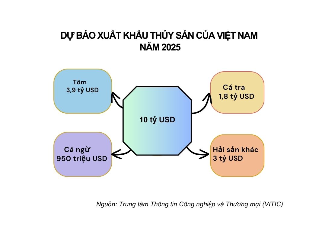 Nhìn chung, xuất khẩu thủy sản sang các thị trường có xu hướng tích cực hơn về nhu cầu cũng như giá cả phục hồi dần. Dự báo xuất khẩu thủy sản đến hết năm 2025 có thể đạt khoảng 10 tỷ USD.
