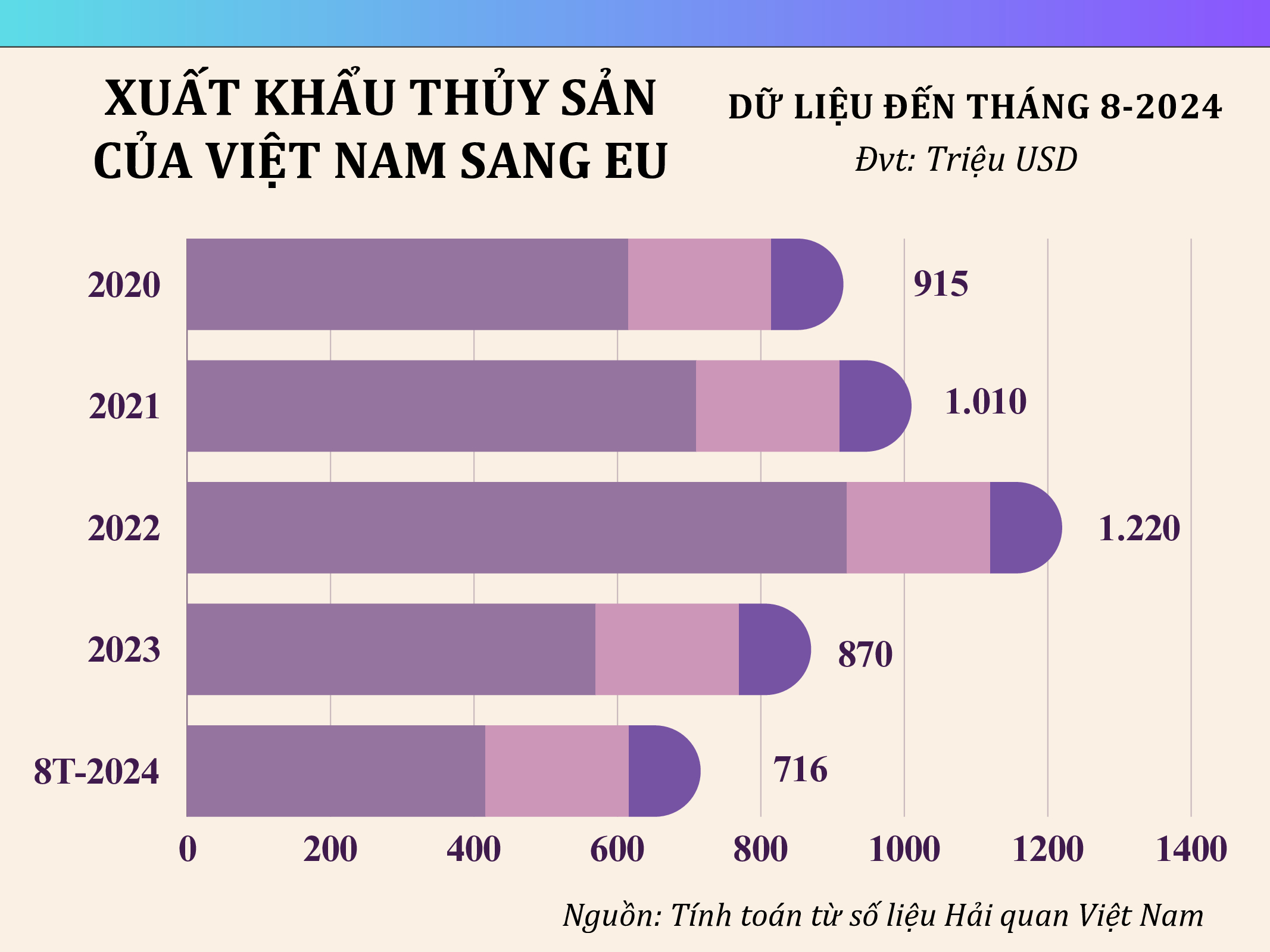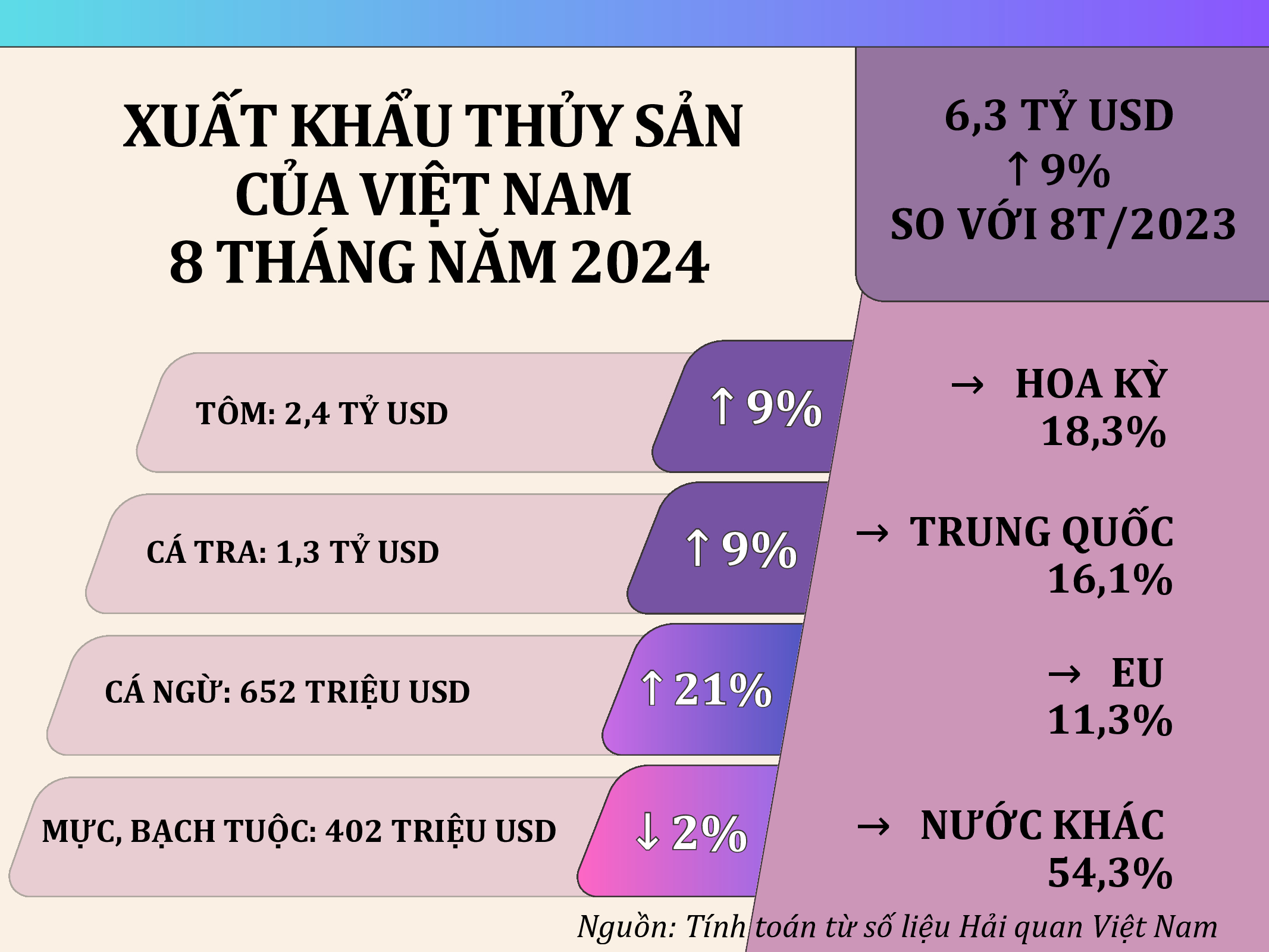 INFOGRAPHIC: Xuất khẩu thủy sản của Việt Nam sang EU tăng 9% trong 8 tháng đầu năm 2024