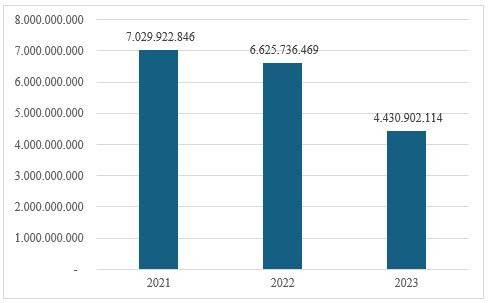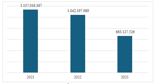 Tổng giá trị nhập khẩu thép mạ crôm sang thị trường EU từ 2021 đến 2023