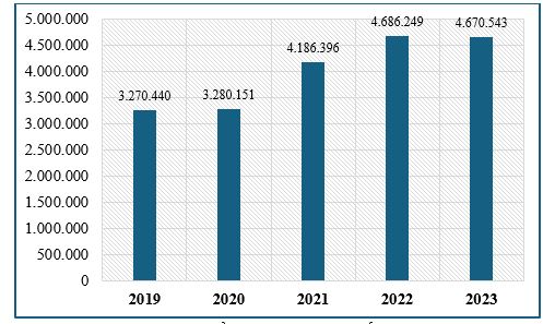 Biểu đồ 1: Biến động trị giá nhập khẩu nhóm hàng mã HS 7604 vào EU-27 từ các thị trường trên thế giới giai đoạn 2019-2024