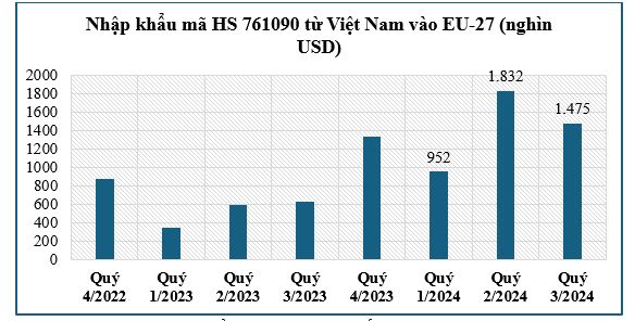 Biểu đồ 12: Trị giá nhập khẩu mã HS 761090 vào EU-27 từ Việt Nam theo quý, giai đoạn 2022-2024