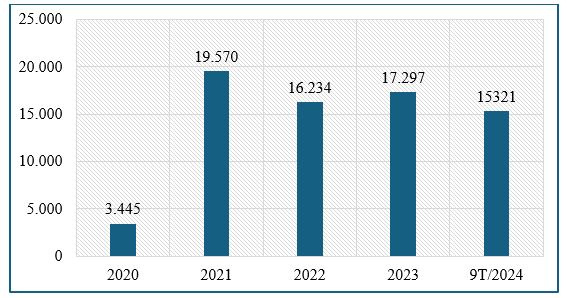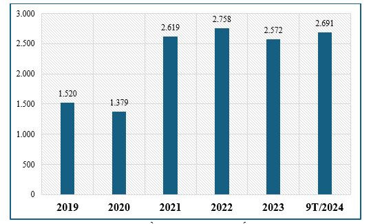Năm 2024, tình hình tiếp tục không khả quan khi kết quả nhập khẩu 9 tháng đạt khoảng 716 triệu USD, tương ứng mức trung bình 795 triệu USD/tháng, vẫn thấp hơn so với mức trung bình 910 triệu USD/tháng của năm 2023.