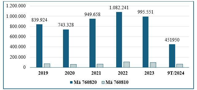 Trong số các chủng loại nhôm thành phần của nhóm này, nhóm mã HS 760429 chiếm tỷ trọng lớn nhất (khoảng 64-65%) tổng trị giá nhập khẩu, tiếp theo là đến nhóm mã HS 760421 và cuối cùng là nhóm HS 760410 với tỷ trọng nhỏ.