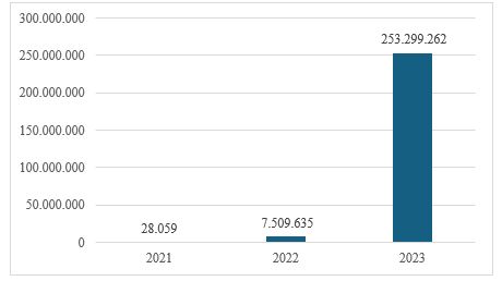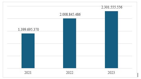 Tổng giá trị nhập khẩu thép hợp kim và không hợp kim phẳng cán nóng sang thị trường Ca-na-đa từ 2021 đến 2023