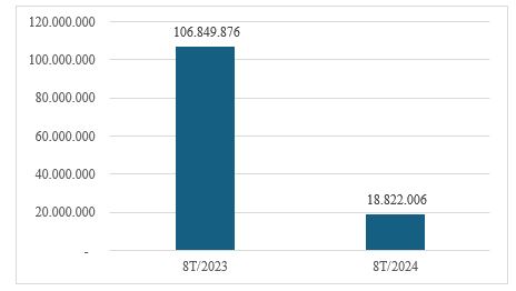 Đến hết 8 tháng đầu năm 2024, xuất khẩu thép hợp kim và không hợp kim phẳng cán nóng của Việt Nam ghi nhận mức sụt giảm mạnh đến đến hơn 82,38% so với cùng kỳ năm trước đó, chỉ đạt hơn 18,82 triệu USD về trị giá.