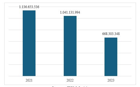 Tổng giá trị nhập khẩu thép chống ăn mòn sang thị trường EU từ 2021 đến 2023