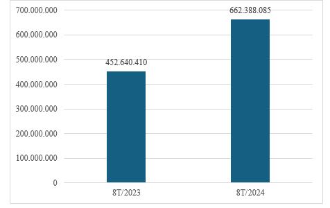 Đến hết 8 tháng đầu năm 2024, xuất khẩu thép chống ăn mòn của Việt Nam ghi nhận mức tăng trưởng đến đến hơn 46,33% so với cùng kỳ năm trước đó và đạt hơn 662,38 triệu USD, gần bằng tổng kim ngạch của cả năm 2023.