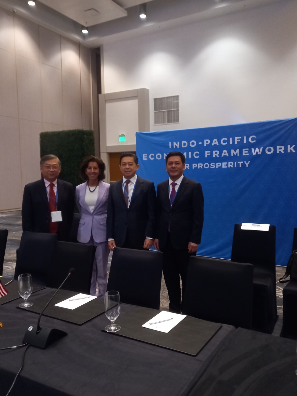 Bên lề Hội nghị IPEF, Bộ trưởng Nguyễn Hồng Diên, Bộ trưởng Gan Kim Yong và Bộ trưởng Dato Amin Liew cũng đã có tiếp xúc với Bộ trưởng Thương mại Hoa Kỳ Gina Raimondo để trao đổi về sáng kiến này. Bà Raimondo đánh giá cao tính thiết thực và kịp thời của Sáng kiến trong bối cảnh chuỗi cung ứng khu vực bị đứt gãy và ảnh hưởng năng nề do dịch bệnh và các biến động khác trên thế giới trong thời gian qua; và cho biết sẽ xem xét tích cực vấn đề này, tạo cơ sở cho việc hợp tác giữa 4 bên trong lĩnh vực chuyển đổi năng lượng./.